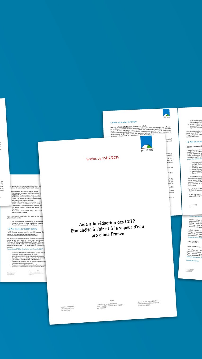 C’est la spécialité de pro clima : des systèmes d’étanchéité à l’air et au vent performants pour protéger le bâtiment et permettre à l’isolation de l’enveloppe du bâtiment de faire son travail le mieux possible.