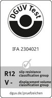 - Sécurité accrue, même en cas d’humidité : propriété antidérapante testée et validée selon la norme DIN 51131